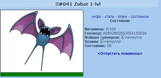 Покемон (номер/картинка, главное чтобы было понятно)